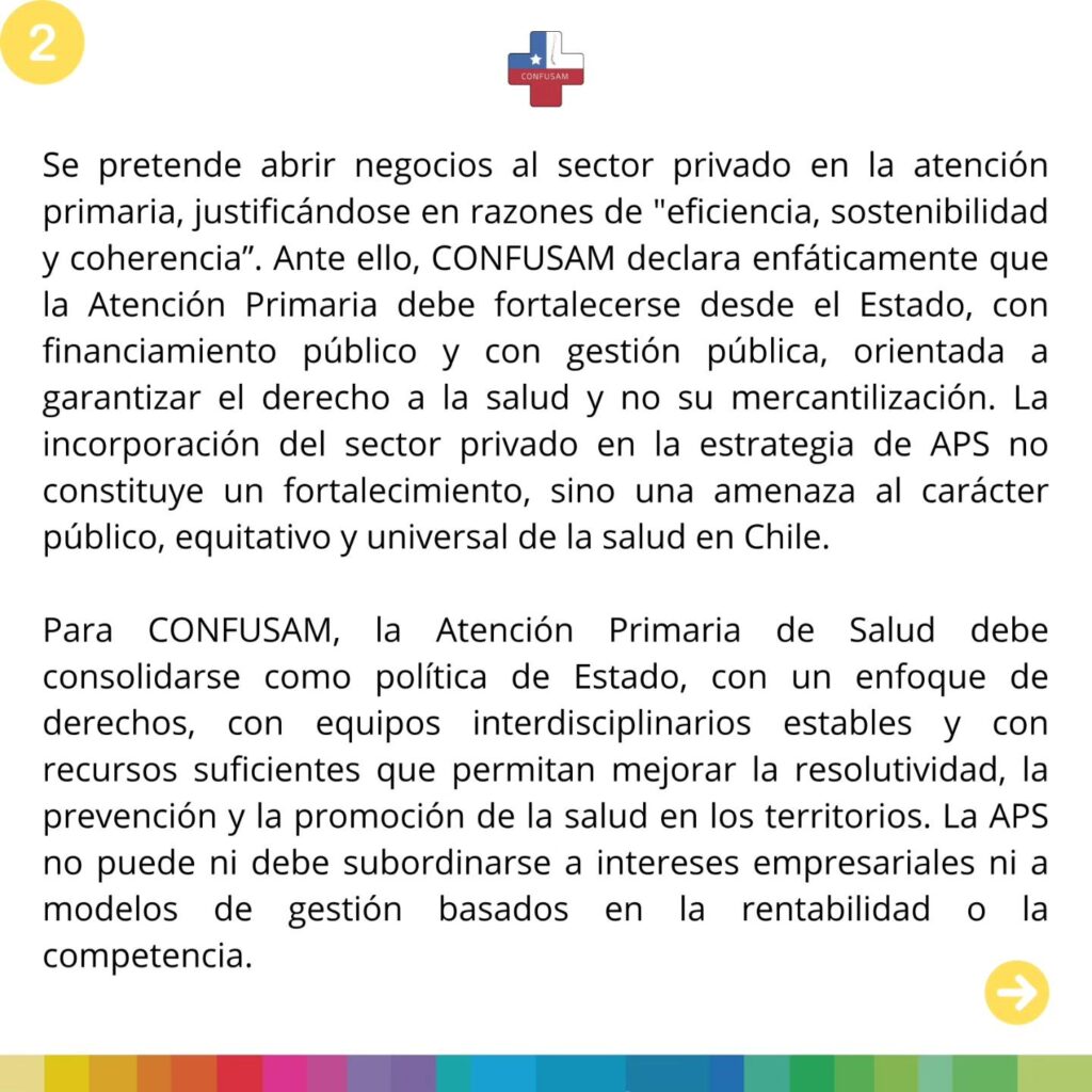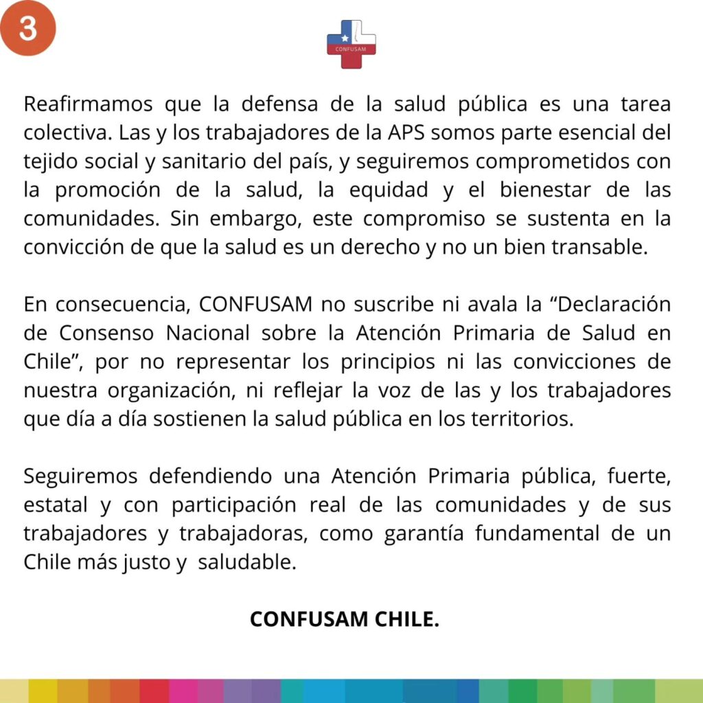 Ante el Consenso Nacional sobre la Atención Primaria de Salud, Confusam Chile Ratifica su RECHAZO